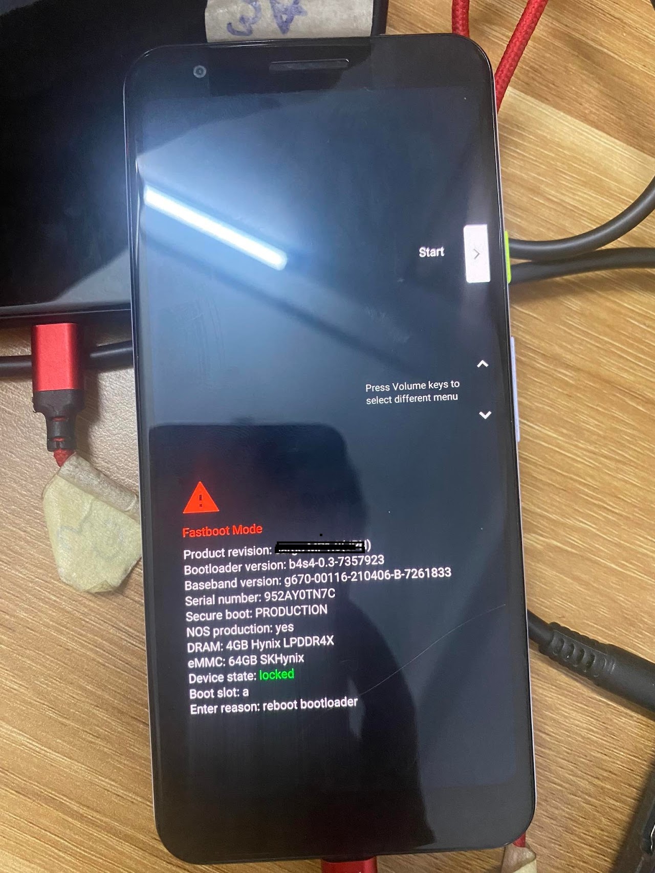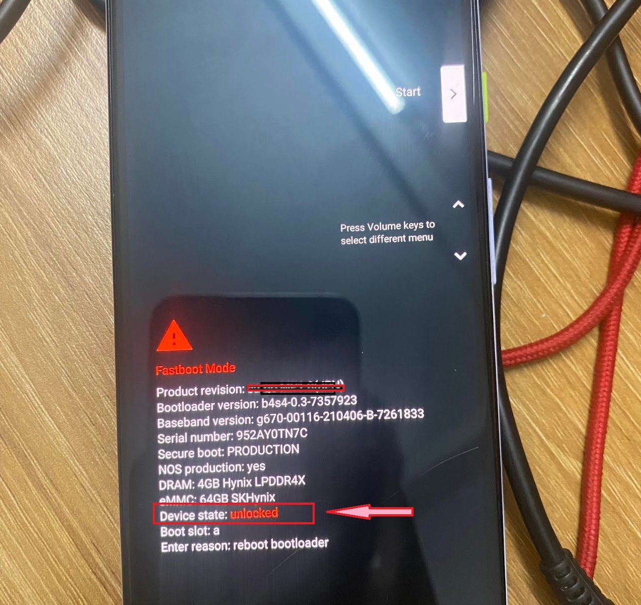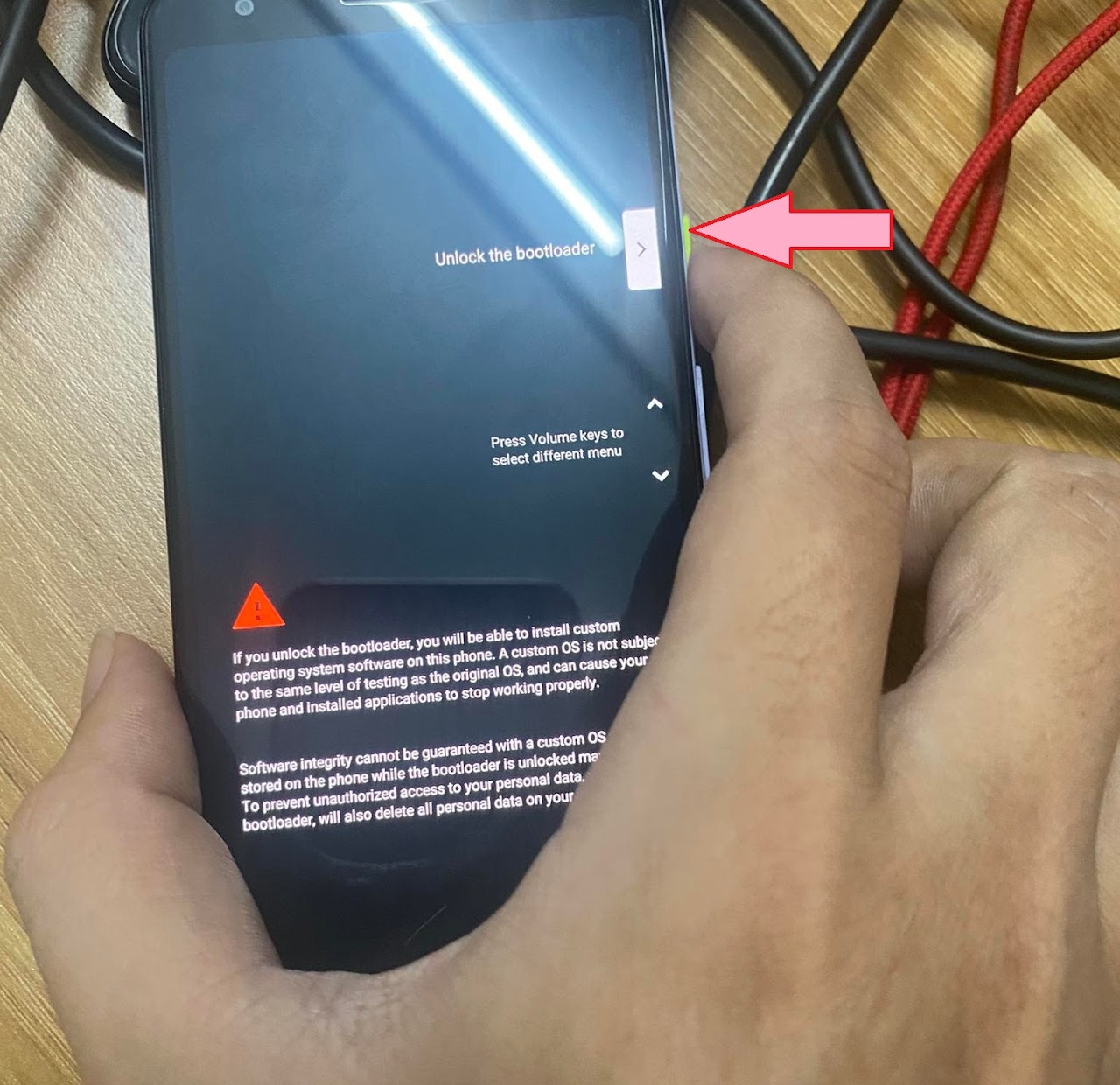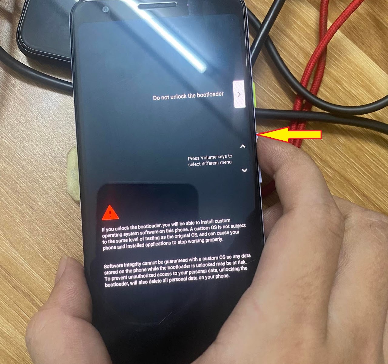 1. Cắm điện thoại vào máy tính -> tắt nguồn điện thoại -> giữ Nguồn + Voume trừ để đưa điện thoại vào chế độ fastboot (Như hình bên dưới)