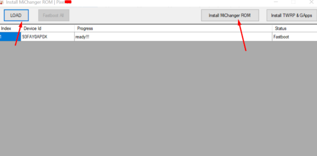 3. Bấm LOAD-> Install MiChanger ROM , để tiến hành cài ROM